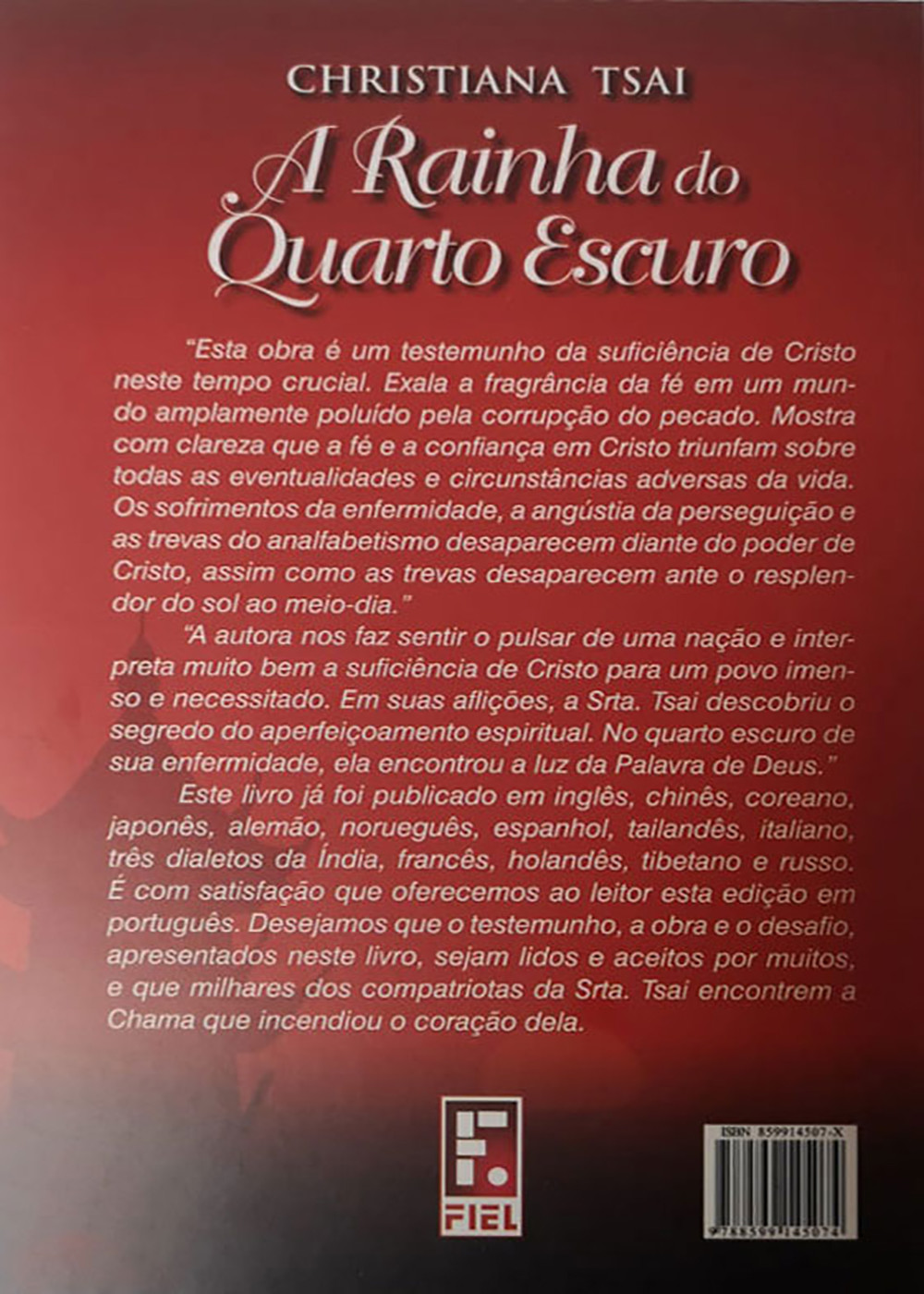 "A autora nos faz sentir o pulsar de uma nação e interpreta muito bem a suficiência de Cristo para um povo imenso e necessitado. Em suas aflições, a Srta. Tsai descobriu o segredo do aperfeiçoamento espiritual. No quarto escuro de sua enfermidade, ela encontrou a luz da Palavra de Deus."